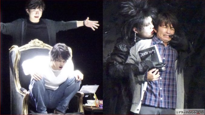ところが名探偵Lが登場し、彼の推理によって次第に夜神月の心は追い詰められるも、”過ちに次ぐ過ち”を犯す”無限ループ”にはまっていく。Lは夜神 月に負けず劣らずの頭脳明晰な人物、2人が掲げる”正義”と駆け引きと頭脳戦、心理戦の応酬は原作でも読みどころだが、ここでも見どころとなっている。そして1幕ラスト、アイドルの弥海砂が…。