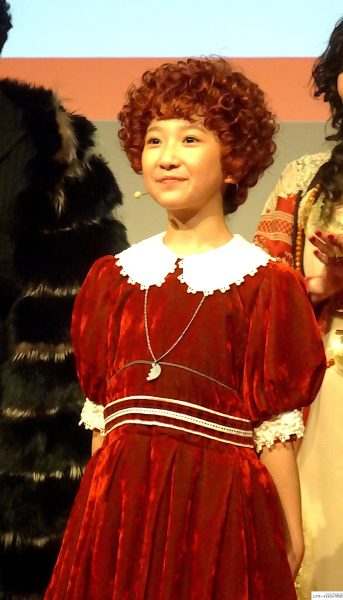 それからアニー役の二人、下山夏永、牧田花、二人とも小学4年生。決まった時の気持ちを。ちなみに下山夏永は初舞台。