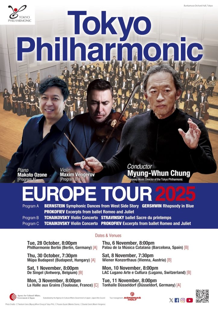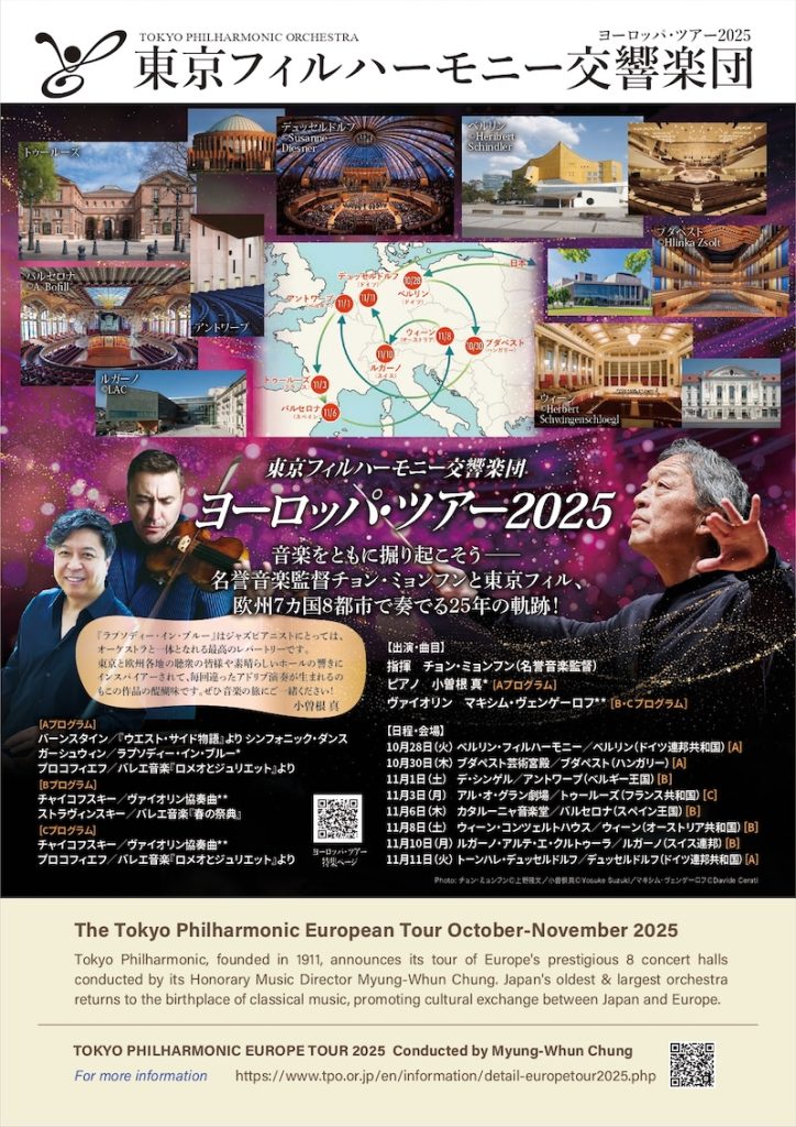 東京フィルハーモニー交響楽団は、10月28日~11月11日にかけ、ベルリン公演から始まる、ヨーロッパ7か国8都市を巡る演奏旅行を実施。指揮は名誉音楽監督のチョン・ミョンフン。ソリストにピアノの小曽根真、ヴァイオリンのマキシム・ヴェンゲーロフが同行する。 、