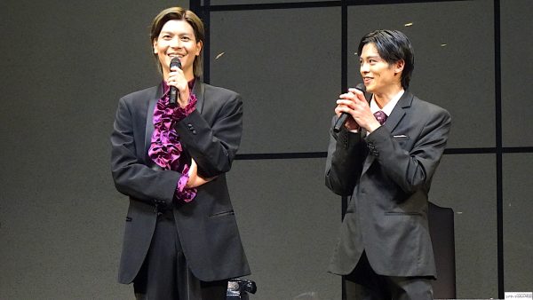 「この『熱海殺人事件モンテカルロ・イリュージョン』という作品はやっぱり昭和の演劇で、結構難しい題材なのかなっていう印象を持つ方ももちろんいらっしゃると思います。僕も実際そうだったんですが、この作品は、歌とかダンスとかいうエンターテイメントの要素もたくさんあるので、演劇の入口としても、すごく入りやすい作品になっています。僕らもやってて感じるものはすごくあって…きっとこの劇場に来てこのつかさんの書いているこの美しい言葉だったりこの世界観を僕らの熱量を通して浴びることによって、きっとその高揚感をすごく感じていただける作品になっていると思います。ので、ぜひ劇場に足を運んでいただいて、そして皆様が面白いと思っていただけたら!『熱海殺人事件』ももっともっと広がっていくと思いますので、僕たちも責任を持って『熱海殺人事件モンテカルロ・イリュージョン』で作品を届けていきますので、ぜひこれからもこの作品がたくさんの方に広がっていくように!」