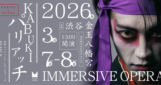 2026年3月7日(土)・8日(日)に東京都渋谷区の金王八幡宮にて上演するイマーシブ(没入型)オペラ『KABUKI×パリアッチ』が上演される。
