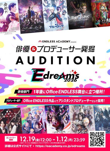 「E dreams AUDITION 2026」は、数々の人気2.5次元舞台や話題作をプロデュースしてきた Office ENDLESS が運営する