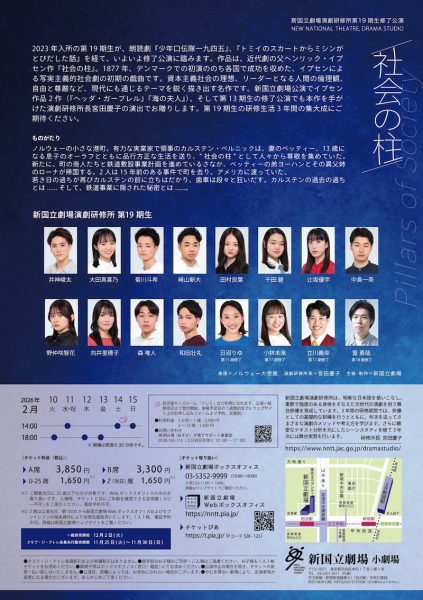 新国立劇場演劇研修所では、第 19 期生修了公演として、 『社会の柱』 (作:ヘンリック・イプ