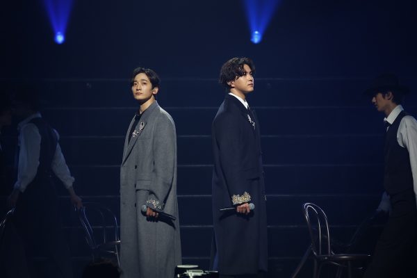 オープニングから“20 周年”らしい演出が随所に施されていた。中央に大きな階段が設置されたステージにブラックが基調の煌びやかな衣装を纏ったメンバーが登場。定番の「まずは水田航生」の掛け声になぞられるように水田から順に、“ハンサム同期”のメンバーや、ハンサムファンになじみの深いメンバーの組み合わせで現れ、松岡のバトンを受け取るようにして最後はポップアップで小関がステージの一番高い位置につく。そして、全員がステージ前方に一列に並び、「THIS IS THE TIME」でライブがスタート。2012 年公演をオマージュした幕開けだ。続くユニット曲の「THRILL」は、今回は全員で披露。