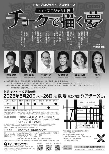 2026年5月20日(水)~5月26日(火)に東京・両国 シアターXにて、トム・プロジェクト版「チョークで描く夢」を上演。