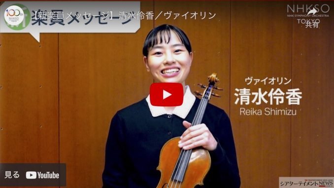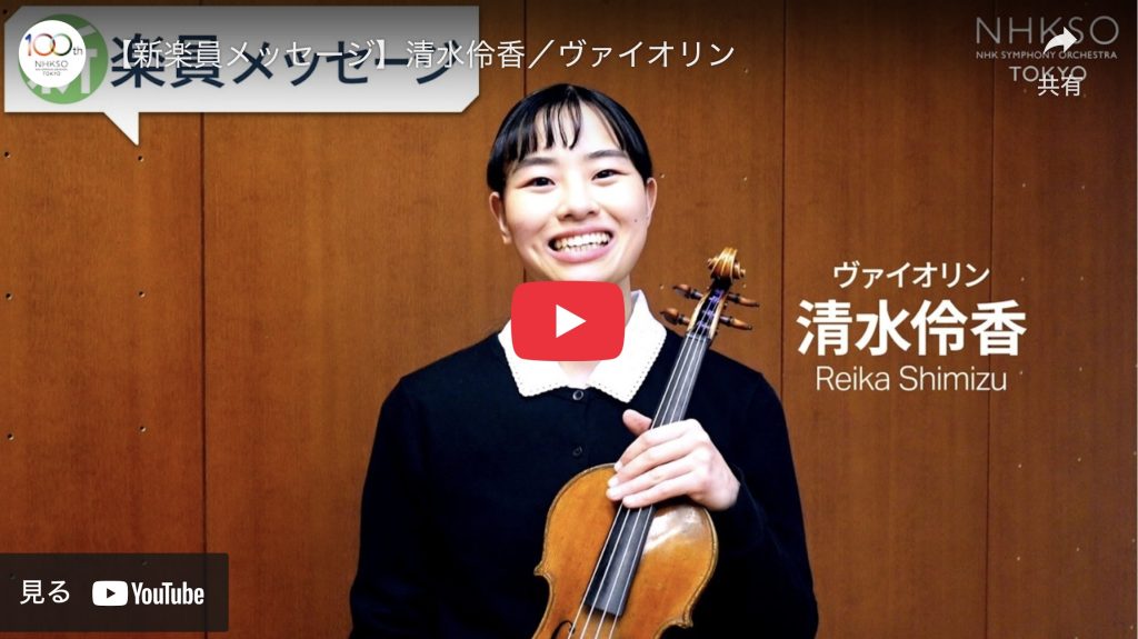 ヴァイオリン奏者の清水伶香が、この3月1日付でNHK交響楽団に入団したと同団の公式WEBで発表された。