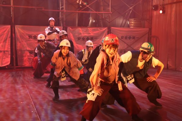 また、工事現場でロマンスが!現場そんなこんなのエピソードを交えて進行、また、身体能力の高いキャストが見応えのあるアクロバットなパフォーマンスを見せてくれるし、タップダンスも披露。とにかく、楽しく、リズミカルなミュージカル、群像劇としてもしっかりと見せてくれる。