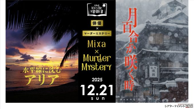 「マーダーミステリー」に人気俳優がチャレンジするイベント『Mixa × Murder Mystery「水平線に沈むアリア」「月百合が咲く時」2025』が、12月21日に、Mixalive TOKYO(ミクサライブ東京)のTheater Mixaにて開催される。