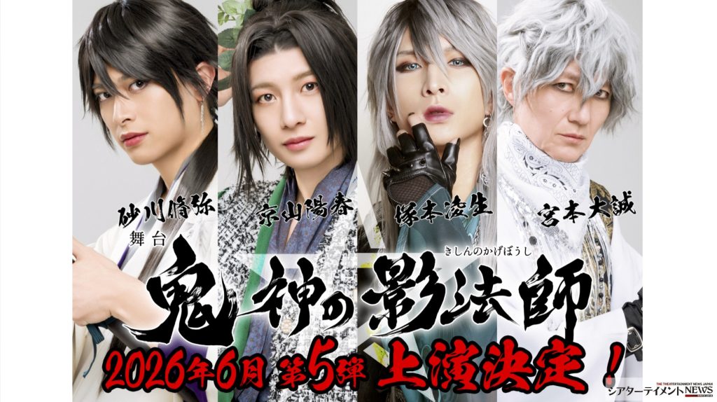 「鬼神の影法師」-陰陽寮篇- が10月26日に千穐楽を迎え、26年6月に新作第五弾が上演されることが発表になった。京山陽春を座長に迎え、塚本凌生、宮本大誠、砂川脩弥らが出演。