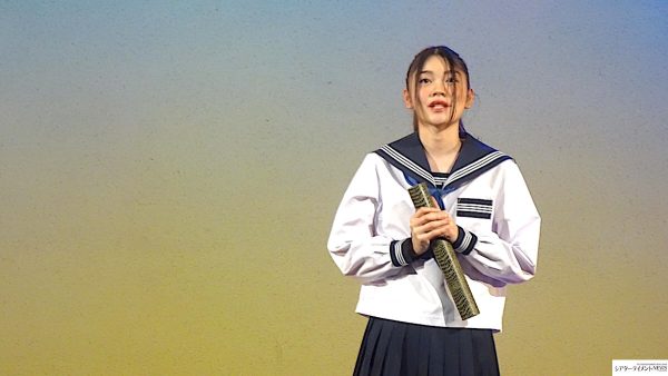 ゲネプロを終え、「本番が楽しみなんですけど稽古場で今までやってきたことを、もう変わらずそのままやろうって…本番はさらにまた熱量がもっと、そしてもっと楽しく本番迎えられるんじゃないかなと思ってドキドキしながら楽しみました。だから手応えとしては長く稽古で準備してきたものをやっと皆様にお届けできる、稽古は大体1ヶ月から1ヶ月半ぐらい。やっぱりつかこうへい作品の独特なもの、演出のこぐれ修さんとお話しながらいろいろ試行錯誤してきました。あとは、割と登場人物それぞれがあんまり接点がないよって言われたり、どんどんいろんなシーンに変わっていくことが多いので、逆にそのバトンを繋げるという意味で、コミュニケーションがすごい大事だなと思いました」とコメント。