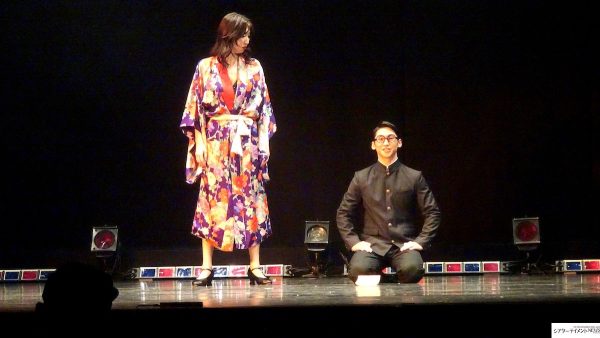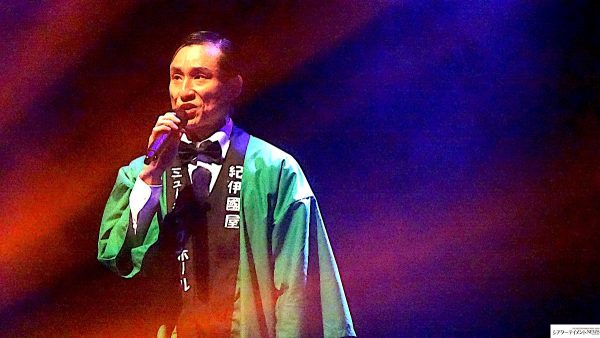 諸注意には支配人(なだぎ武)、派手な半被、よく見ると「紀伊國屋」の文字が(笑)、ここはご愛嬌。そしてすぐにショータイム、お色気ムンムンな空気感に包まれる。この物語の主人公・明美(日比美思)。彼女にはヒモがいる、シゲ(田谷野亮)。