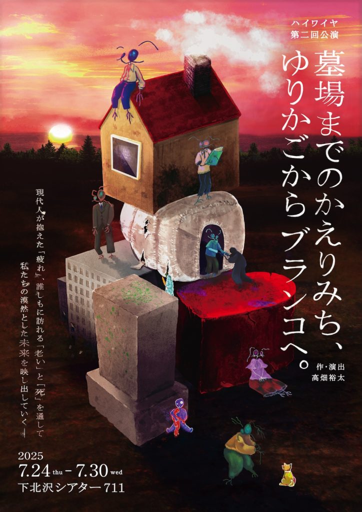 劇団ハイワイヤの第2回公演『墓場までのかえりみち、ゆりかごからブランコへ。』 が、25年7月24日~ 下北沢・シアター711にて上演。その舞台映像がカンフェティにて期間限定で配信される。