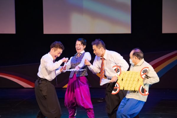 「わらび座は来月で創立75周年を迎えます。この大きな節目に秋田で生まれた『HANA』、本作はコロナで苦境に立たされた私達が、今、自分たちに何ができるのか、必死に取り組んで生み出した作品でもあります。人類はどの時代も苦しいときこそ歌い踊り手を取り合うことで、困難を乗り越えてきた歴史があります。その生きるための祈りや願いの結晶が祭りであります。秋田県での上演では、既に1万人の方々が観劇してくださいました。