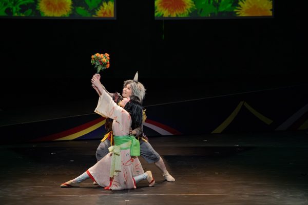 栗城 宏「私はこの作品、三つの魅力があると思っています。一つは、踊りが圧倒的に躍動的であり力強く、そして優しさがあり、豊かな踊りを踊っていることです。わらび座の役者自体が、踊りが本当に好きなんですね。『HANA』に出ることを誇りに思い、日常訓練も欠かさずに、踊ることに本当に邁進している、目前にしてみんな沸き立っている、そういうわくわくした踊りを見ていただける。これは東北6大祭りの伝統芸能もそうですし、ラッキーさんや彩木さんが作ってくださった踊り、ノンバーバルでもわかるストーリー性が持っているダンスを作っていただいているので、そういう意味で踊りがとっても魅力的に映ると思います。