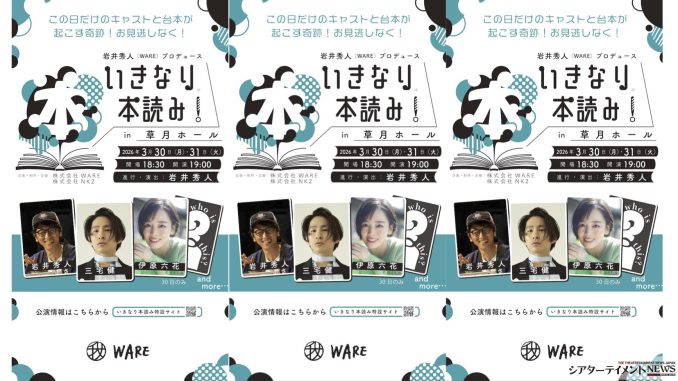 “初見台本読み合わせライブ”の最新公演『いきなり本読み! in 草月ホール』が、3月30日・31 日、草月ホールにて開催。WARE 主宰・岩井秀人が企画・進行・演出を手がける。