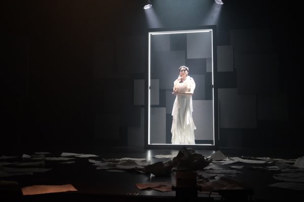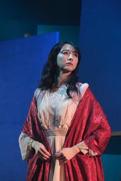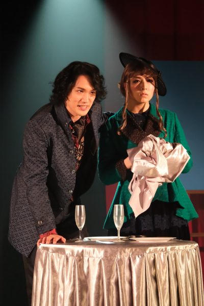 また、劇場は恵比寿のシアター・アルファ東京、小振りの劇場で、客席通路も使う演出、また劇中劇では、観客席は、その劇中劇の客席にもなるので、劇中劇への没入感も感じられる。この作品のタイトルは”サラ・ベルナールの『サロメ』”、だが、生涯を通じてサロメを演じることはなかったとのこと。オスカー・ワイルド(白柏寿大)はサラに芝居を書かせて欲しいと言う。