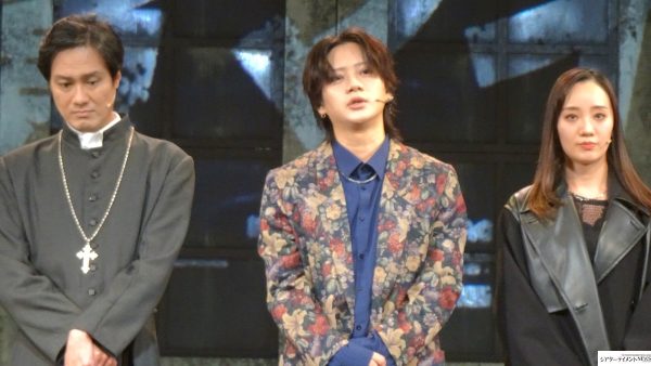 佐藤流司「ミステリー要素やサスペンス要素がだいぶ強く色濃く反映されている作品ですので、我々が理解できなければお客様を理解させるのは非常に難しいと思っておりますので、しっかり自分たちがそれぞれの役割を理解した上で物語をしっかり噛み砕いて、皆様に伝えられるようにって、各々が意識していたと思います。 稽古場の雰囲気もかなり殺伐としてて会話も…(ここでなだぎ武が「いやそんなことないぞ」)、今回はシリアス作品かなと思ってます」とコメント。