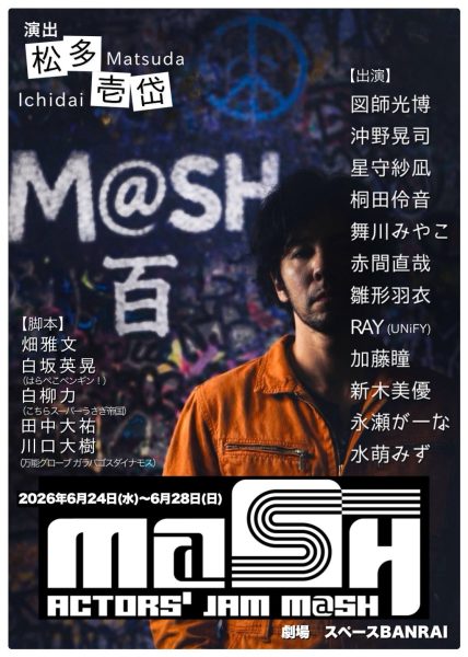ACTOR’S JAM「M@SH 」とは俳優・図師光博と演出家・松多壱岱による伝説のユニット。満を持して今年復活。『役者の遊び場』をメインテーマに掲げ、実力派のクリエイターとキャストが集結。 彼らが互いの才能をぶつけ合い、「本気で遊ぶ」ことから生まれる、唯一無二のエンターテインメントを創出。そして、この「遊び場」をさらに刺激的に彩るのは、演劇界の第一線で活躍する豪華脚本陣。