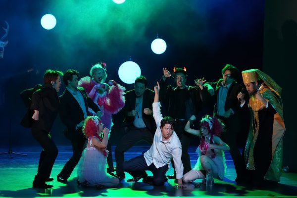 幕開き、白いスーツ、白い髪、ショートヘアのシンガーが登場し、歌う、さながらトリックスターのような雰囲気を纏い、観客の視線を集める。