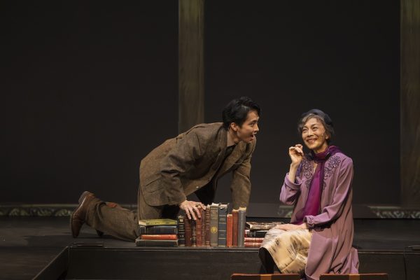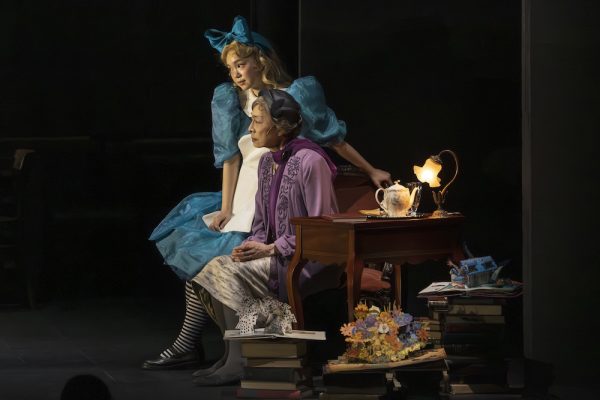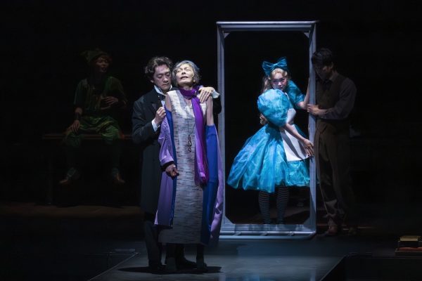 通路からアリス・リデル・ハーグリーヴス(麻実れい)がゆっくりと登場し、最前列の客席に座る。そして場内アナウンス、後方に座っている観客は、本当にギリギリに客席に入った観客と勘違いするかもしれない。そのくらい、ナチュラル。彼女はピーター・ルウェリン・デイヴィス(佐藤寛太)に会う。アリス・リデル・ハーグリーヴスは、あの「不思議の国のアリス」のモデル、年齢は80代、そしてピーター・ルウェリン・デイヴィスは「ピーター・パン」のモデル、いい大人、物語では二人とも”永遠に子供”だが。ピーターは独立系の出版社を経営している。時は1932年。「不思議の国のアリス」は1865年11月に刊行、1886年には7万8000部、1898年までは15万部以上、大ヒット。対する「ピーター・パン」は1904年に発表された戯曲「ピーター・パン:大人にならない少年」が初出。そして1911年に小説「ピーターとウェンディ」が発表された。何度か手直しされ、1928年に台本「ピーター・パン:大人にならない少年』が出版された。
